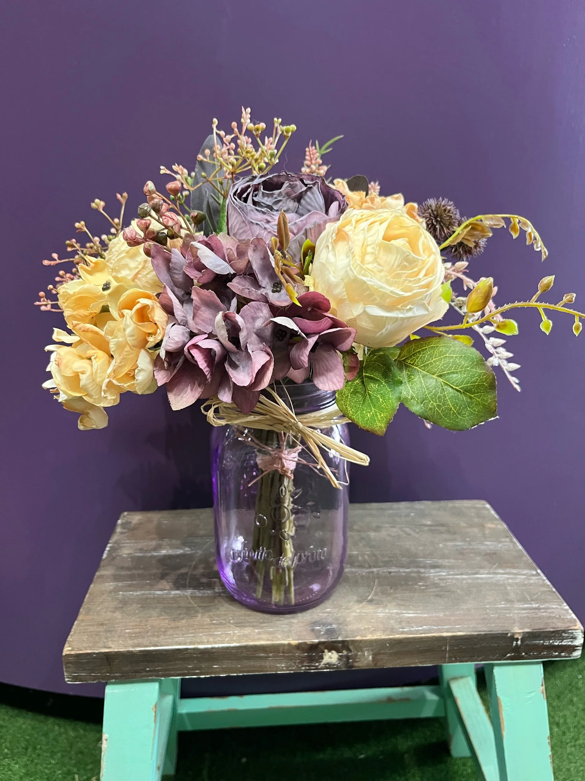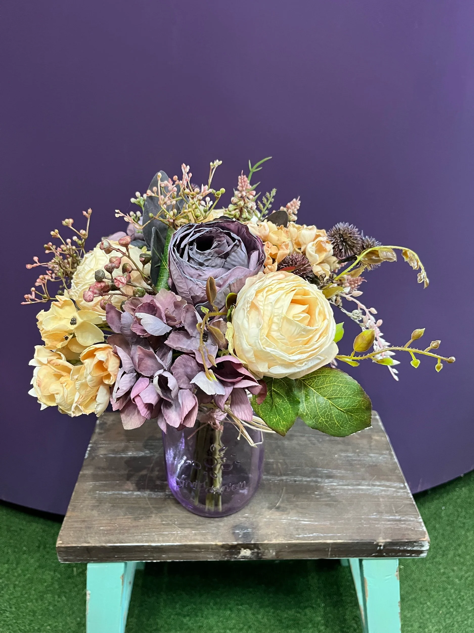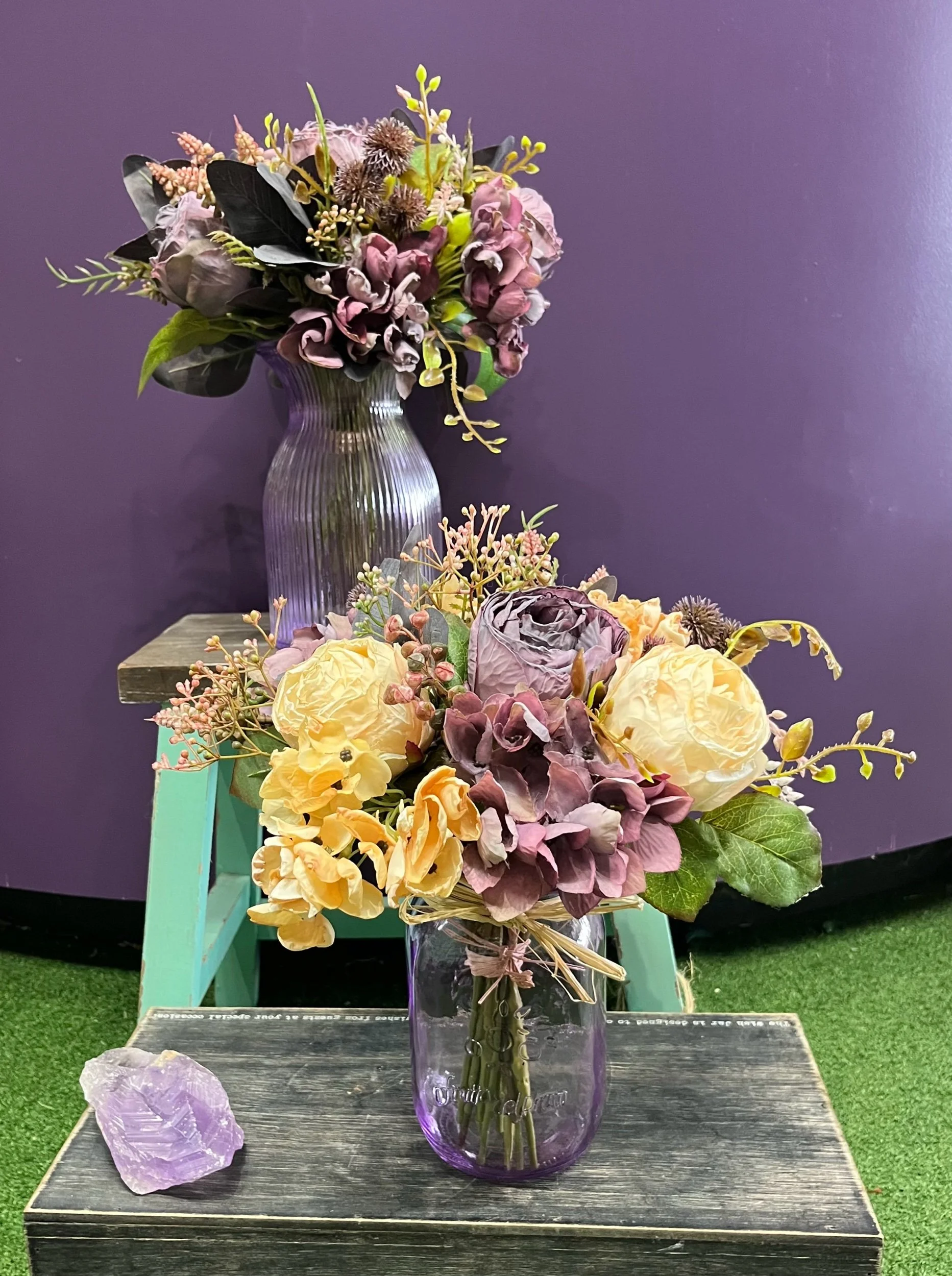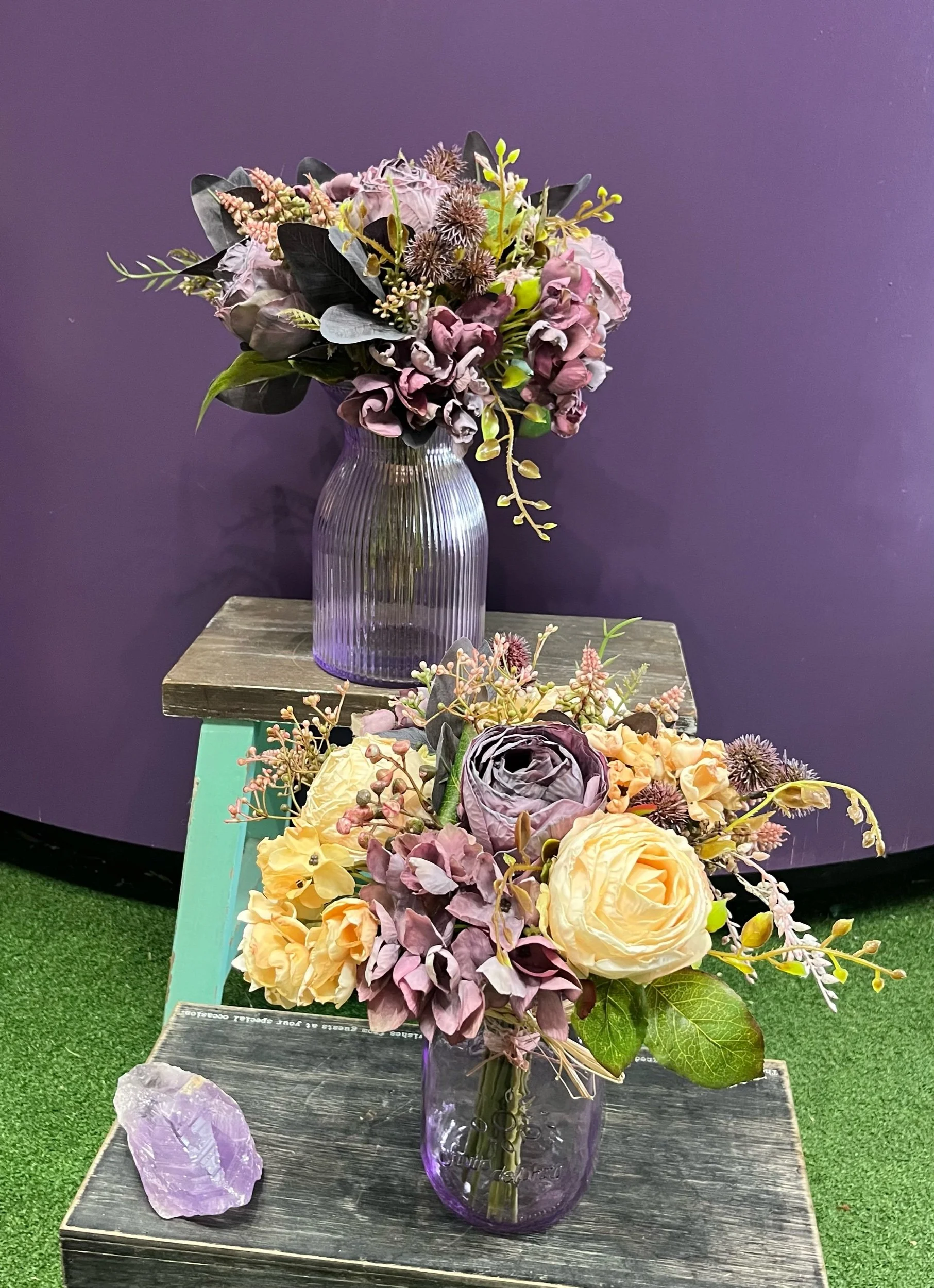 Gorgeous artificial posy that you have to look twice at to see it’s not real and then you still can’t believe it. It is accompanied by our new stunning purple vase. 💜🪻💜